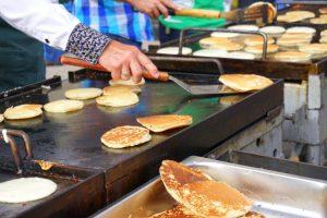 The menu will include pancakes, beef sausages, halal sausages, oranges, bananas, granola bars, coffee, water, and juice boxes. *We sincerely apologize but gluten-free pancakes will not be available.